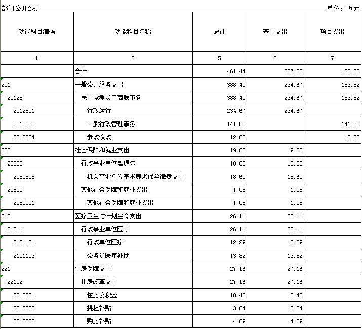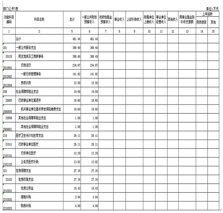 2018年一般公共预算支出预算461.44万元。其中:本年预算461.44万元,比2017年预算减少26.76万元,下降5.48%,主要是养老保险改革,退休人员工资未列入预算,人员经费有所减少。具体安排情况如下: