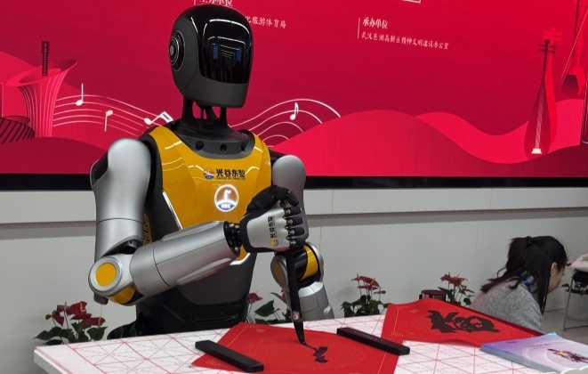 武汉企业造人形机器人走进政务大厅,现场写“福”字引众人围观,效果不逊于人工书写