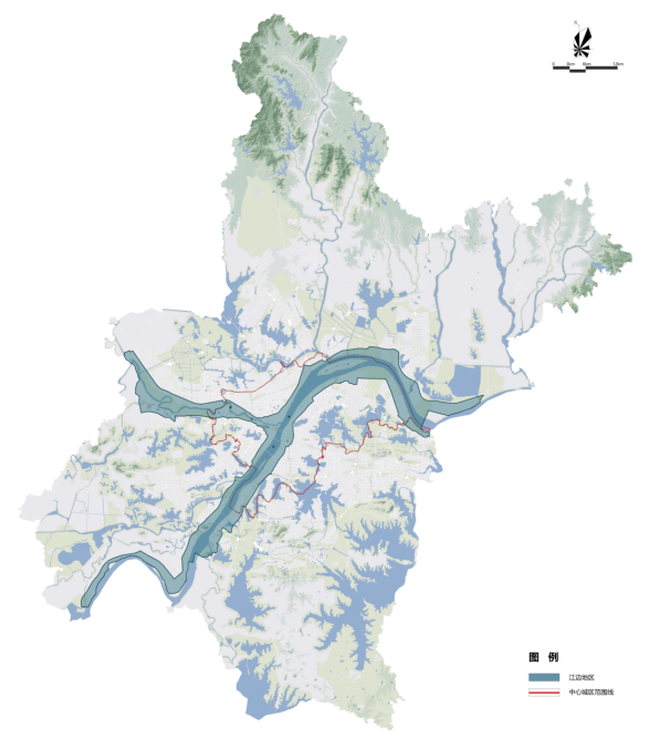 第三条 江边地区以长江、汉江水系蓝线为基础,结合视距及城市道路确定(附图1-1)。