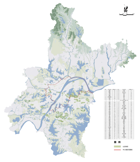 山边地区以山体本体线为基础,结合视距及城市道路确定(附图1-3)。