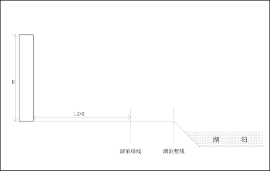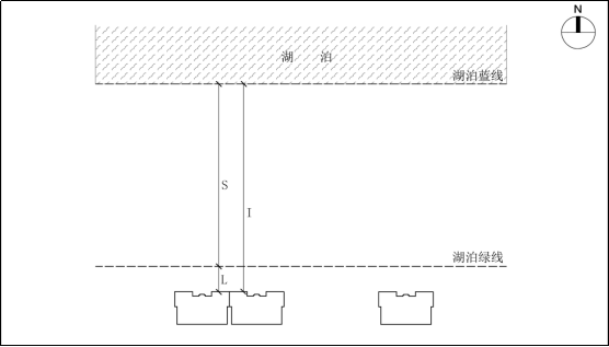 L-建筑临湖面外缘垂直投影线距离湖泊绿线距离;