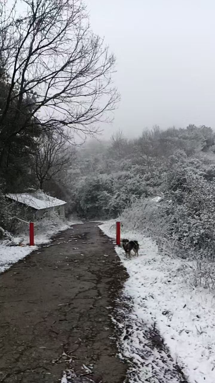 黄陂区木兰天池,山林间“见白”了。
