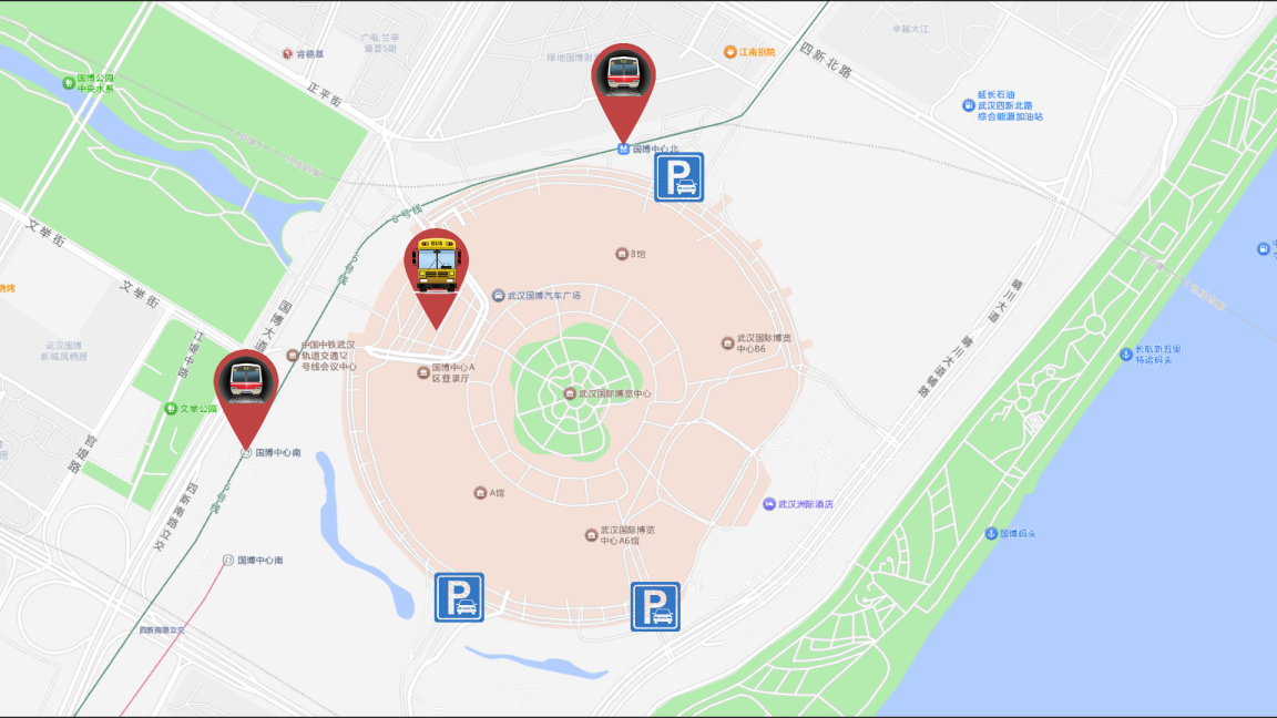 从三环方向来车:三环线国博大道立交——国博大道——四新南路——江浔路至武汉国际博览中心A馆停车区、文举公园地下停车场;