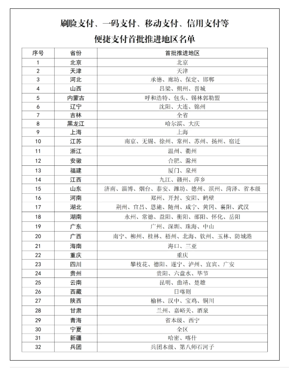 国家医保局公布的《刷脸支付、一码支付、移动支付、信用支付等便捷支付首批推进地区名单》显示,湖北有8地入选,武汉是其中之一。