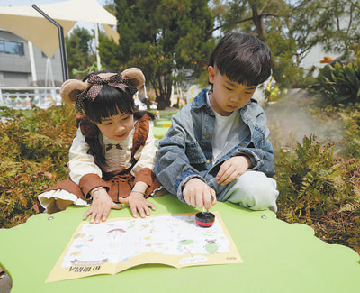 科普产品面向公众、服务公众。科普体验馆运营总经理吴计瑜介绍,根据儿童成长发展特征,运营方在室外种植了近500种植物,例如加强儿童图形认知能力的象形植物、提供嗅觉和味觉认识训练的香料植物等。“春天到了,我们还以绿藻为灵感设计了原创植物IP形象,并推出了亲子背包、植物盒子等系列文创产品,受到家长和小朋友青睐。”吴计瑜说。