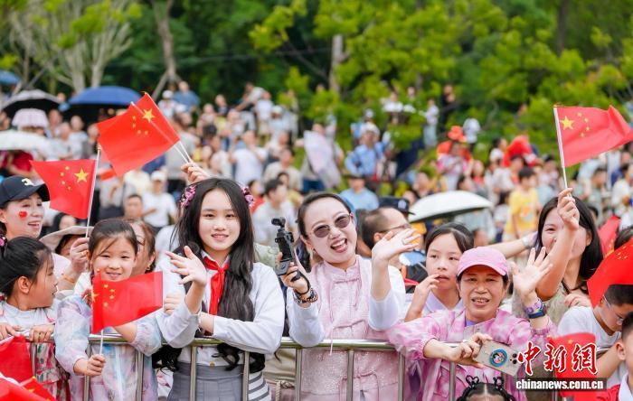 2025“河山添锦绣——文旅IP城市大巡游”10月1日在武汉东湖高新区(又称“中国光谷”)启幕,23台花车、38家国内外演艺团队联袂呈献视听盛宴,与武汉市民、游客共庆祖国华诞。