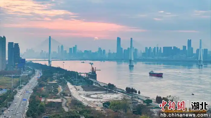 奔至建设三路江滩段,赛道旁的巨型艺术装置——一冶重件码头映入眼帘,那是由龙门吊改造而成的工业地标。褪去油污锈迹的钢架在晨光中泛着金属光泽,镂空设计与长江江面的波光相互映衬,随手一拍就是工业风大片。跑过此处时,风穿过钢架的缝隙发出轻微回响,仿佛是工业时代与奔跑节奏的隔空共鸣,脚下的赛道仿佛变成了时光跑道,每一步都在与城市的工业记忆对话。