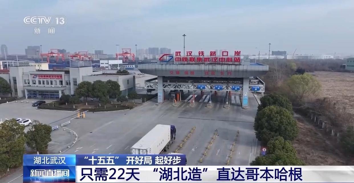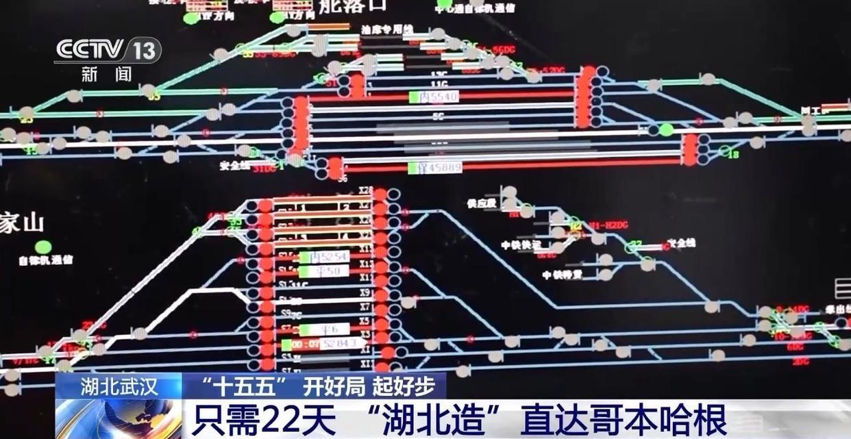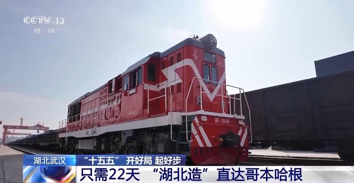 中欧班列就如同一支“钢铁驼队”,搭载着武汉及华中地区的汽车零配件、太阳能光伏组件、轻纺织品等货物,从武汉出发,到达德国的汉堡,再通过铁水联运,到达丹麦的哥本哈根,全程只需要22天左右。