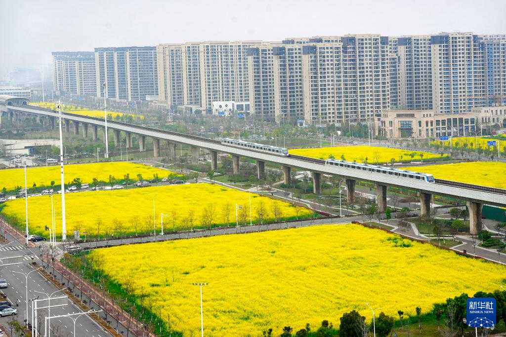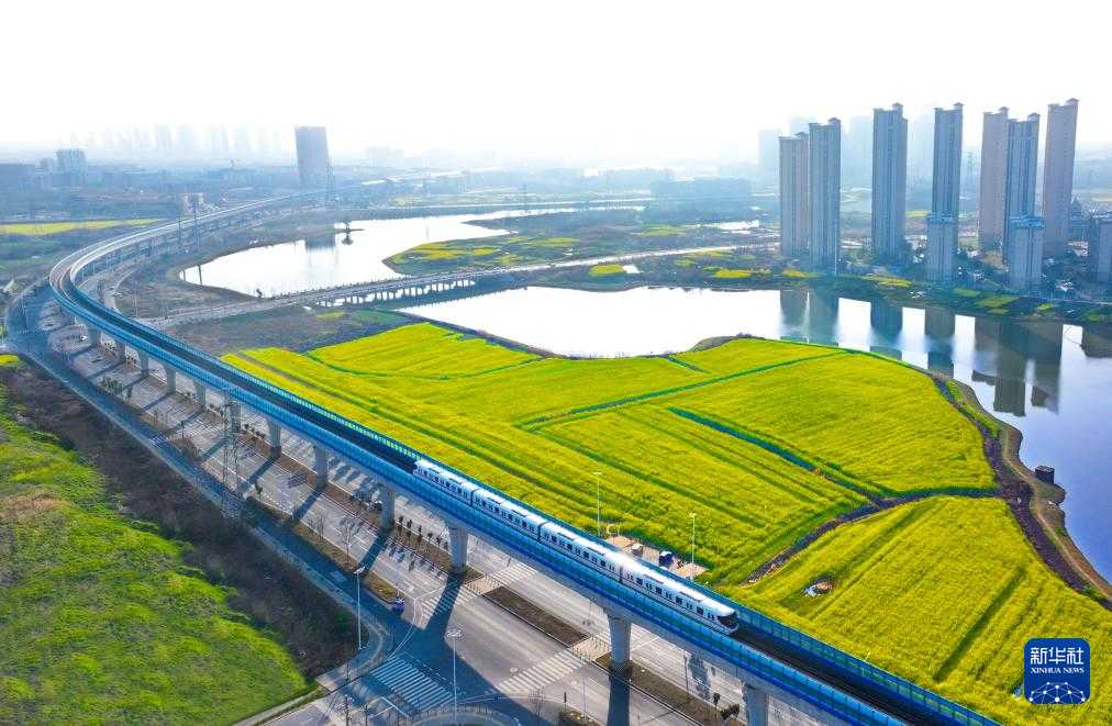 武汉地铁16号线穿越武汉经开区的油菜花海。