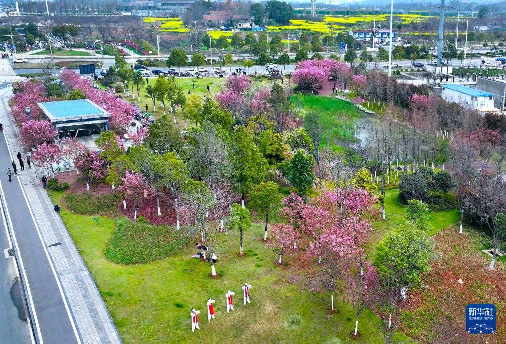 不只是油菜花田。从三店站乘地铁向北行驶一站,便是码头潭公园,园内樱花正盛。上午10时许,一列粉色涂装的“樱花专列”缓缓驶入车站,与满树繁花相映成趣,吸引不少摄影爱好者驻足拍摄。