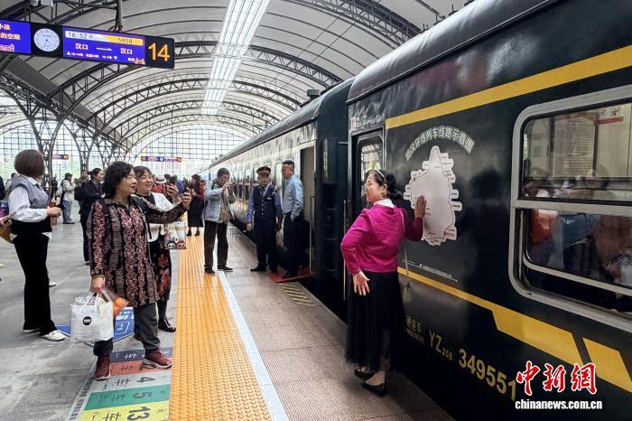 4月8日,旅客在湖北武汉搭乘5858次列车感受怀旧之旅。中新社记者 张芹 摄