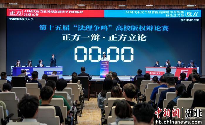 “AI时代,是否应当显著提高网络平台的版权注意义务?”4月13日下午,第十五届“法理争鸣”高校版权辩论赛决赛在武汉举行。中南财经政法大学和澳门科技大学两支辩论队就这一辩题展开激烈交锋,最终中南财经政法大学摘得桂冠,澳门科技大学斩获亚军,澳门科技大学王凯霆获得“最佳辩手”称号。浙江财经大学和甘肃政法大学分获季军,华中科技大学、上海交通大学、南昌大学、南京师范大学、山东政法学院、中南财经政法大学、甘肃政法大学、西北政法大学、浙江财经大学、南京大学获得优秀创意战队。
