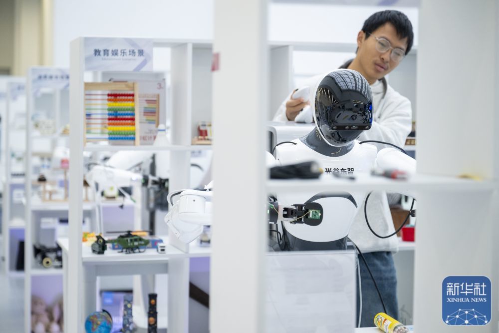 11月6日,在湖北人形机器人创新中心,人形机器人数据采集员在进行数据采集工作