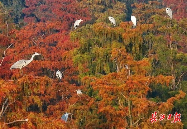 涨渡湖湿地森林公园的“水上森林”以池杉林层林尽染的景观闻名,秋冬季节池杉树叶由绿转黄、渐染绯红,形成色彩斑斓的“油画森林”奇观,同时吸引大量候鸟栖息,构成独特生态画卷。涨渡湖为长江中游重要湿地,2002年被世界自然基金会列为保护区,现存池杉超24000株,分为水上与陆地两片区域。11月至次年2月为最佳观赏期,12月雪后景观尤为梦幻。