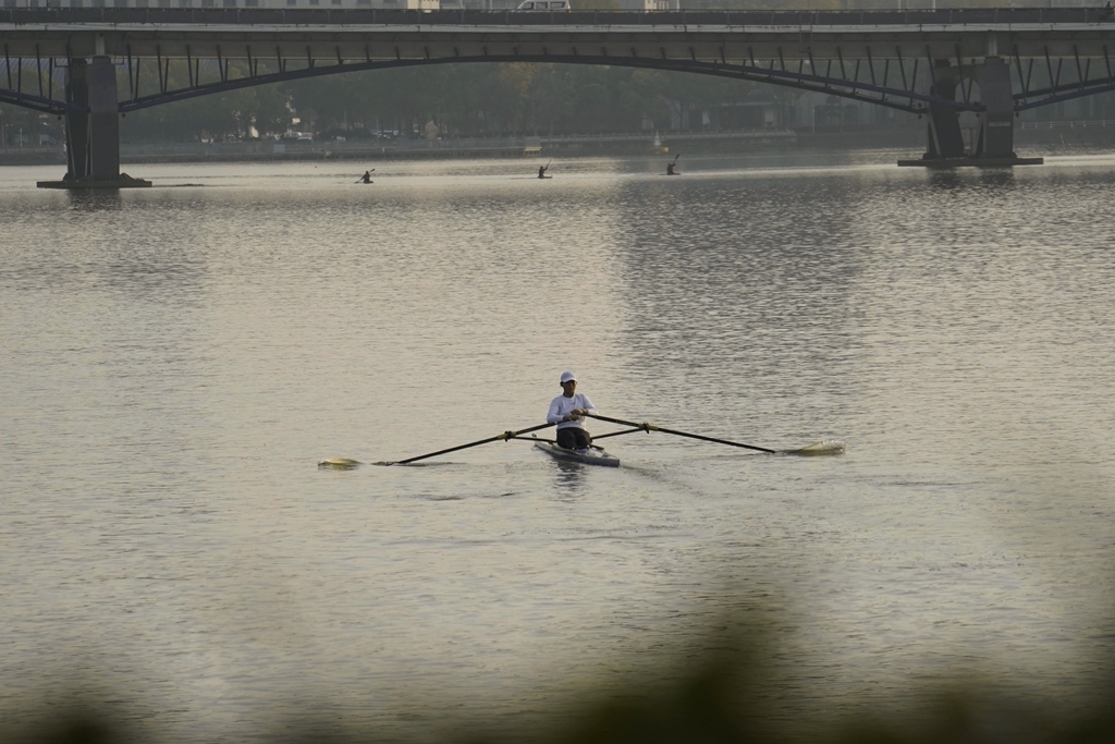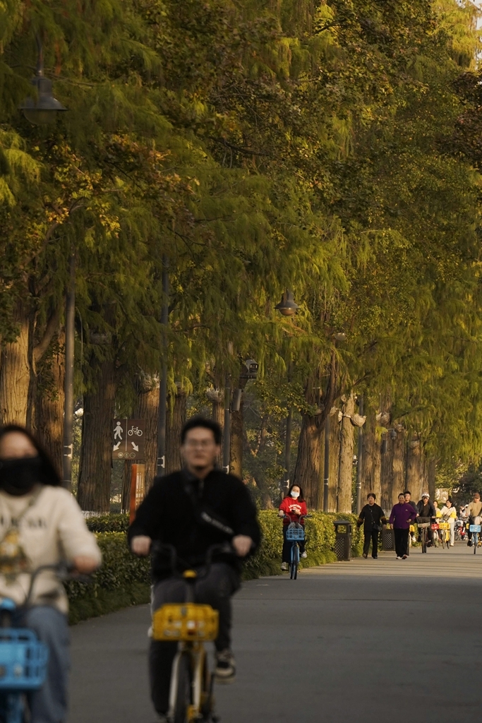 11月21日,武汉天气晴好,正是户外运动的好时节,东湖绿道游人如织。年轻人骑着单车迎着夕阳飞驰而过,湖中皮划艇爱好者挥桨破浪,年轻的妈妈带着孩子共读画报,冬日暖阳下的东湖活力满满。