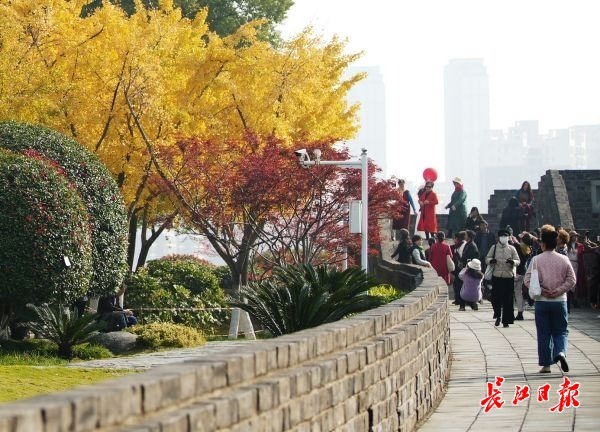 11月24日,武昌首义路至起义门沿线路段上的银杏树枝叶交织,阳光透过稀疏的叶片洒下斑驳陆离的光影,宛如金色长廊,吸引了众多市民来此漫步,拍照留影,享受深秋暖阳。