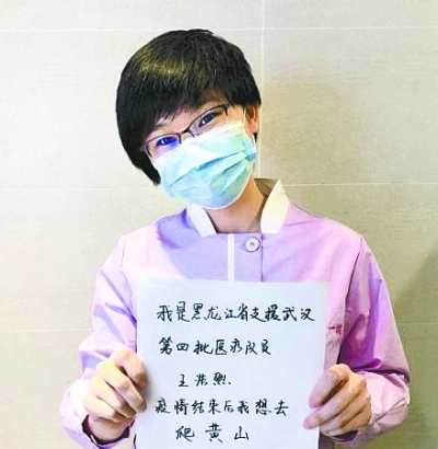 黑龙江省支援武汉第四批医疗队王浩然:疫情结束后我想去爬黄山。