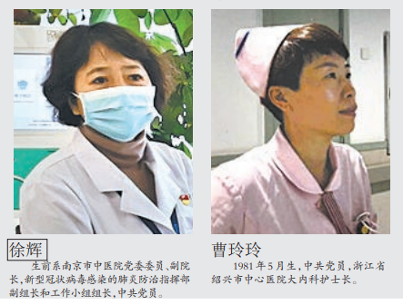 还有两位是地方抗疫一线的女医务人员:生前任南京市中医院党委委员、副院长徐辉;浙江省绍兴市中心医院大内科护士长曹玲玲。