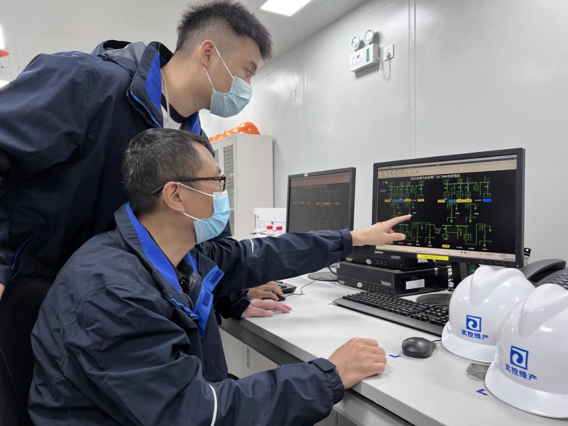 11月2日中午12时,艳阳高照,北湖污水处理厂光伏项目调度中心内,武水集团绿色产业分公司负责人目不转睛地盯着监控平台的数据,该厂分布式光伏电站项目已于11月1日晚6时全容量并网运行,日照充足的情况下,每天可为全厂的生产运行提供20%的清洁能源。“北湖污水处理厂光伏发电项目光伏出力时段平均每小时发电量已达5000度,接近设计规模,目前运行正常,4万多块光伏板正欢快地收集着太阳能。”