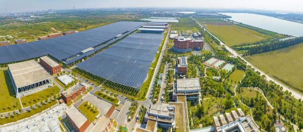 北湖光伏项目安装容量为23.73MWp,光伏组件共计44884块,分别在厂区内现有建筑物屋顶、二沉池、生物池上布置光伏组件,总覆盖面积约18.5万平方米。二沉池、生物池上方的组件支架为预应力柔性支架,组件总数量为安装容量为23.13MWp。本项目预应力柔性支架,总用钢量约715吨,钢索总长度约165km,最大连续跨度为730米,最大单跨跨度为59.3米,为目前全国柔性支架体系中最大单跨跨度。