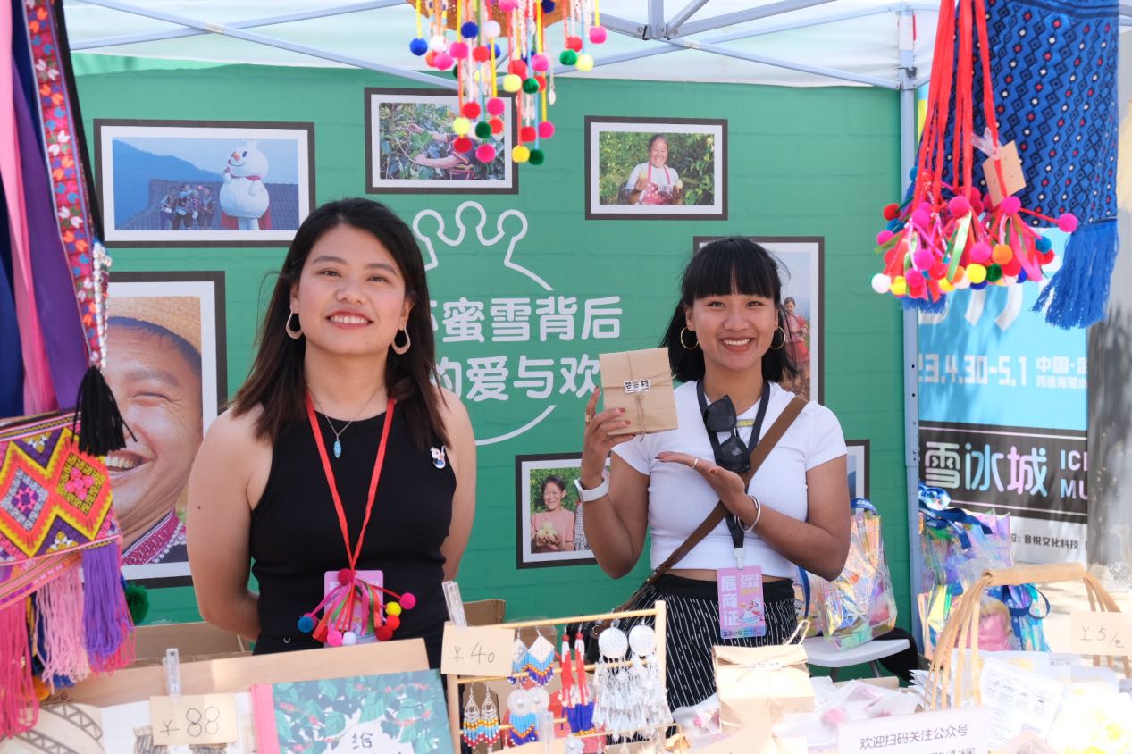 游客正在驻足了解来自四川、云南的冻干玫瑰、咖啡等文创产品。