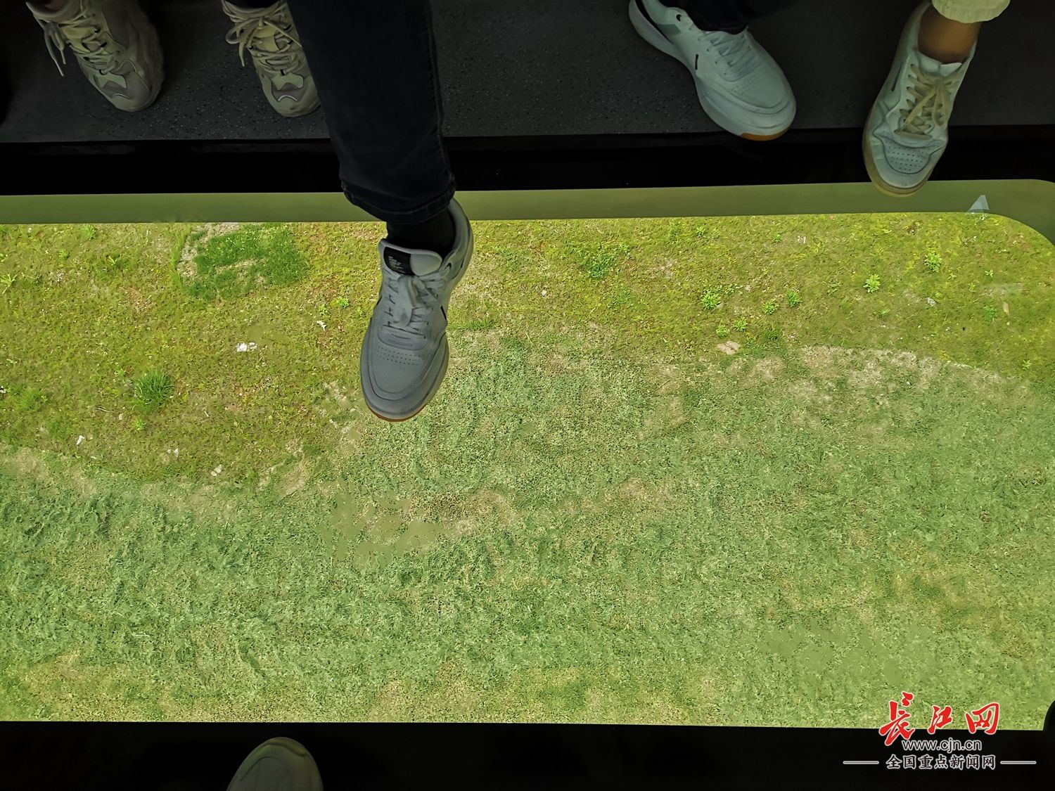 列车缓缓驶出高新大道站,脚下车厢地板的透明式观景窗中不断闪过地面草地、鲜花,从两侧窗户远眺,光谷生态大走廊美景尽收眼底。