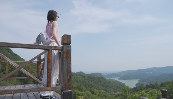 站在观景台上远眺,少潭河水库于群山环抱间如美目流盼