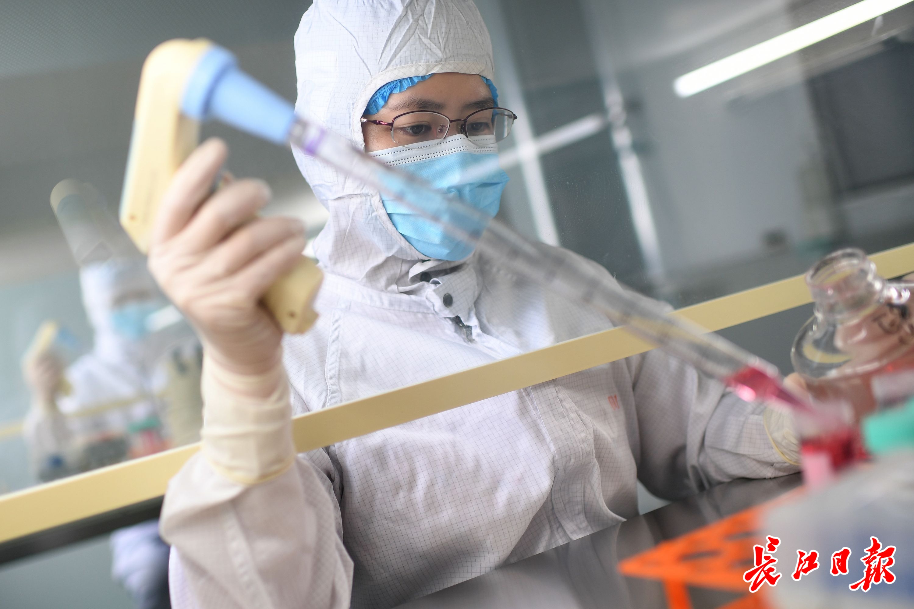 2023年8月8日,在位于光谷的武汉睿健医药科技有限公司(简称“睿健医药”)研发生产基地,科研团队正在进行帕金森新药NouvNeu001的生产。