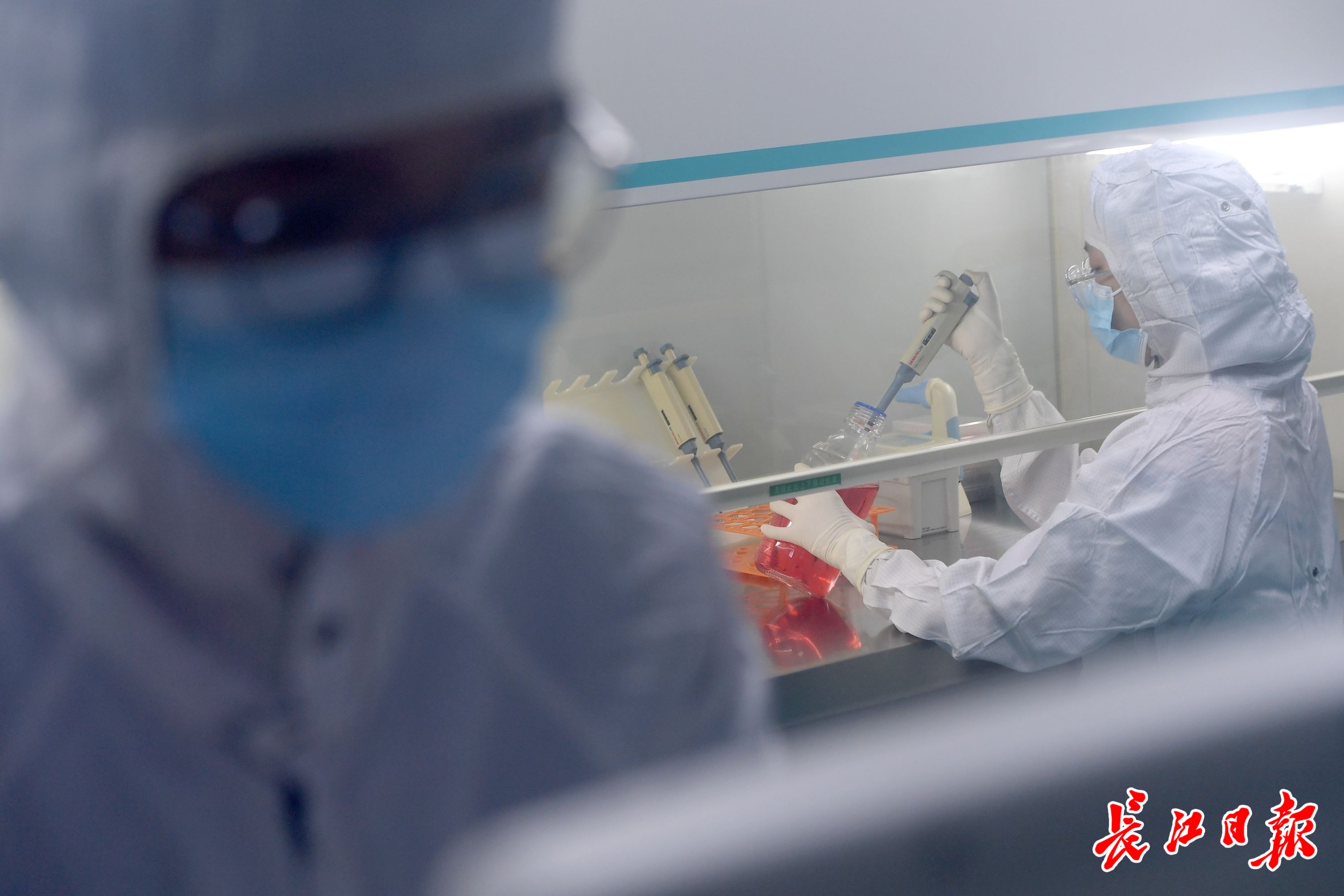 在研发生产基地,研发工程师进行新化学诱导培养基的研发