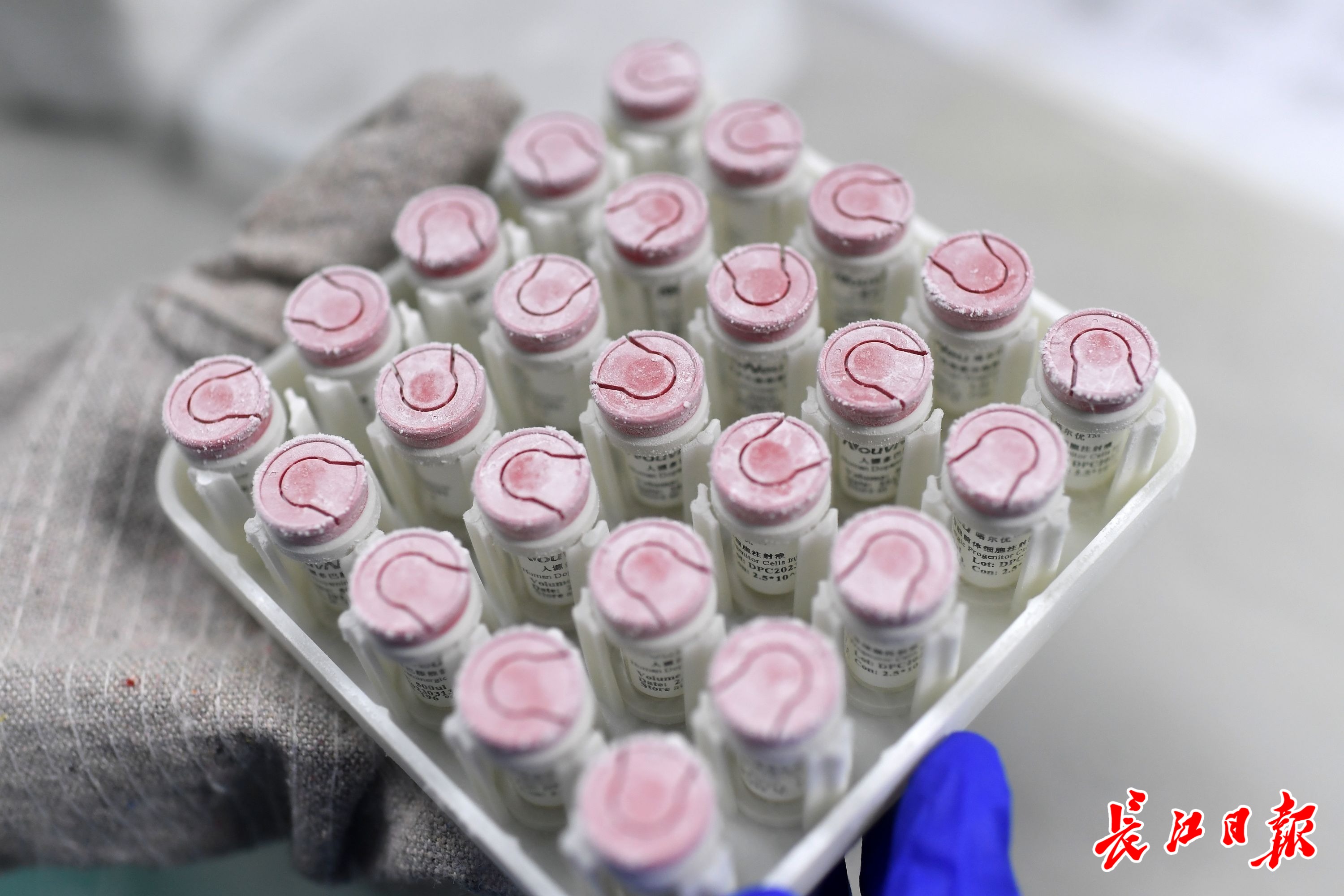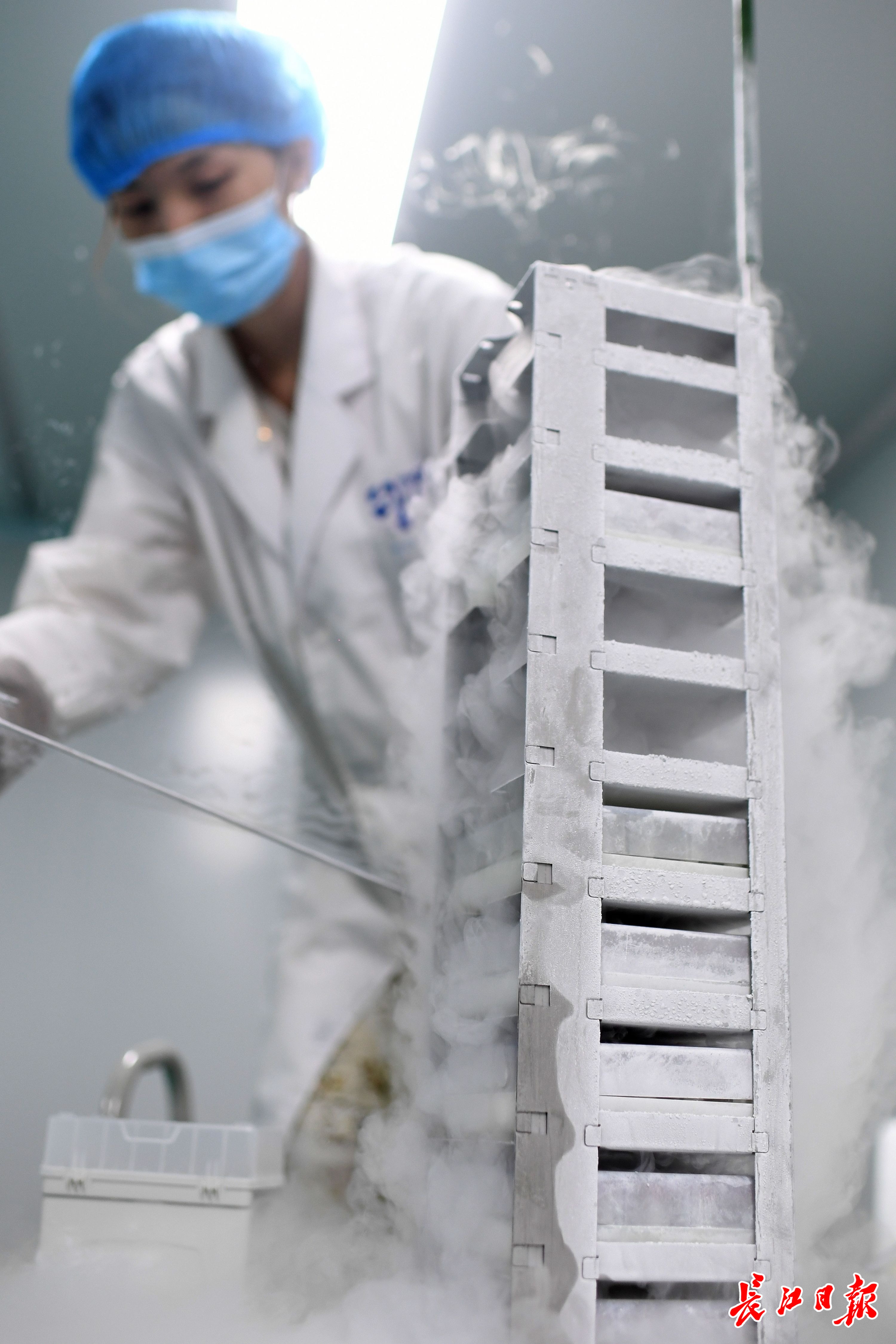 在产品存储区,工作人员在液氮中冻存制备好的帕金森新药NouvNeu001