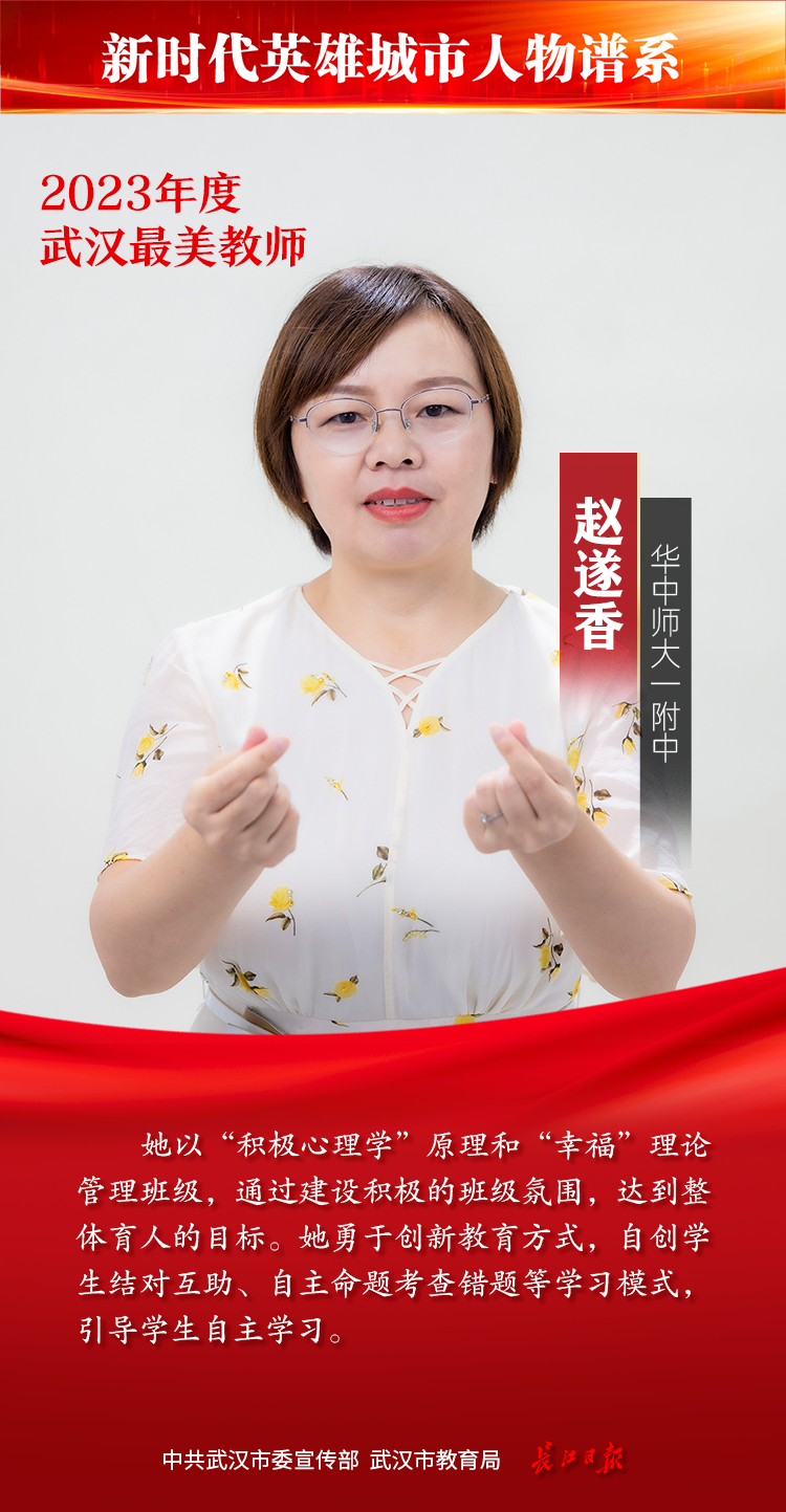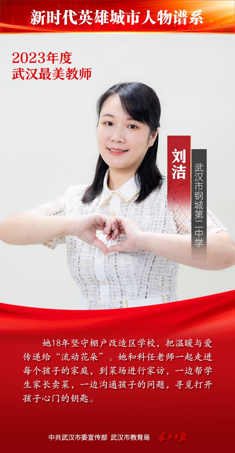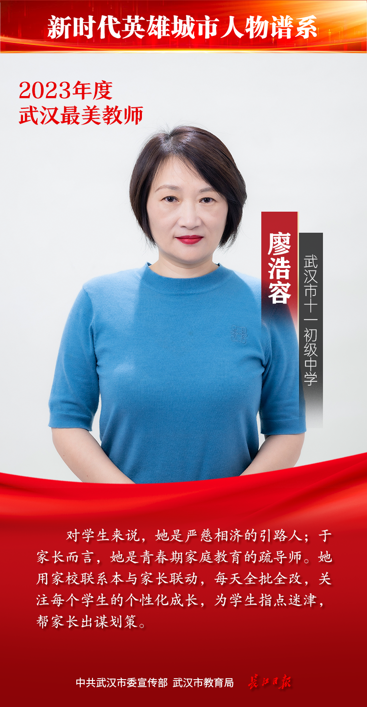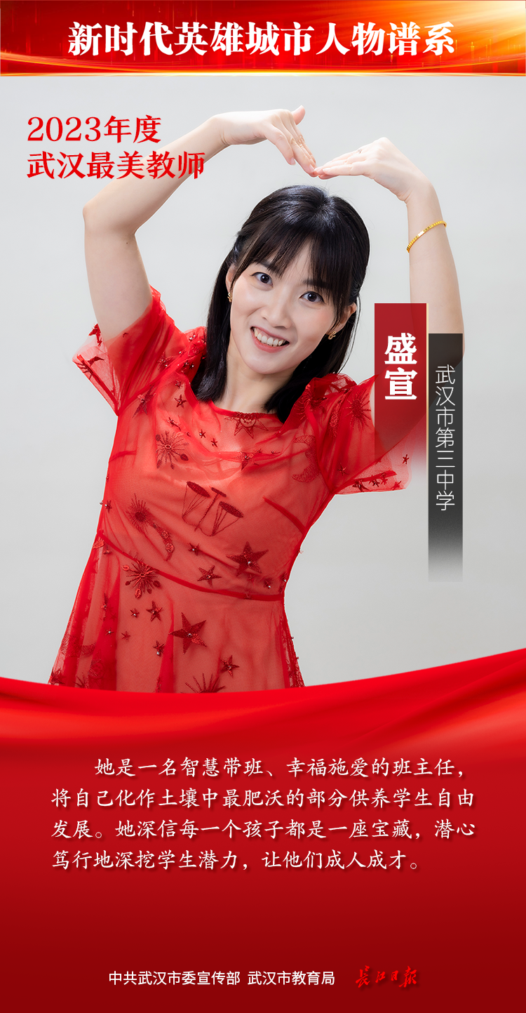 教师是立教之本、兴教之源。为发掘宣传基层优秀教师典型,彰显新时代人民教师的理想情操、高尚师德和人格魅力,教师节前夕,由中共武汉市委宣传部、武汉市教育局主办,长江日报承办的2023年度武汉最美教师评选活动落幕,综合网络投票情况和专家组评审结果,最终20位教师获“武汉最美教师”称号。