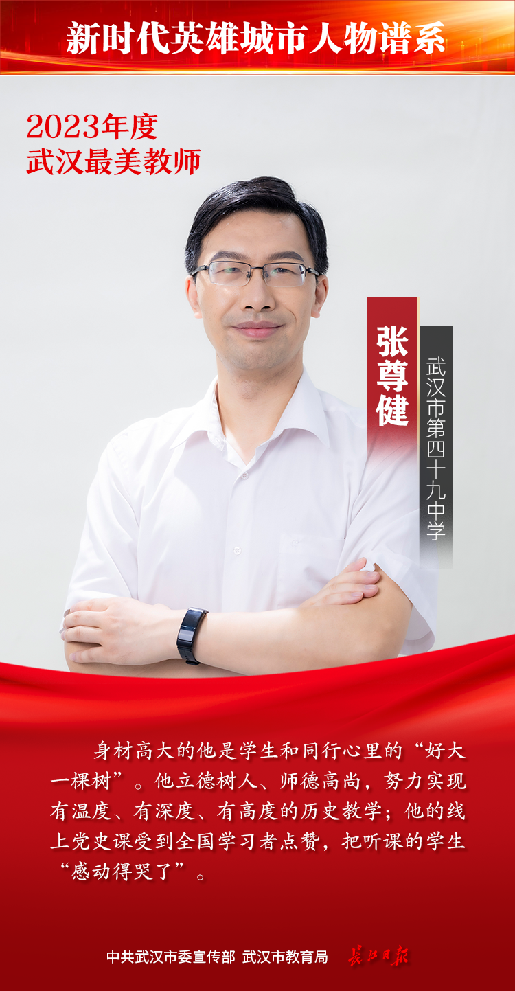身材高大的他是学生和同行心里的“好大一棵树”。他立德树人,师德高尚,努力实现有温度、有深度、有高度的历史教学,他的线上党史课受到全国学习者点赞,把听课的学生“感动得哭了”。