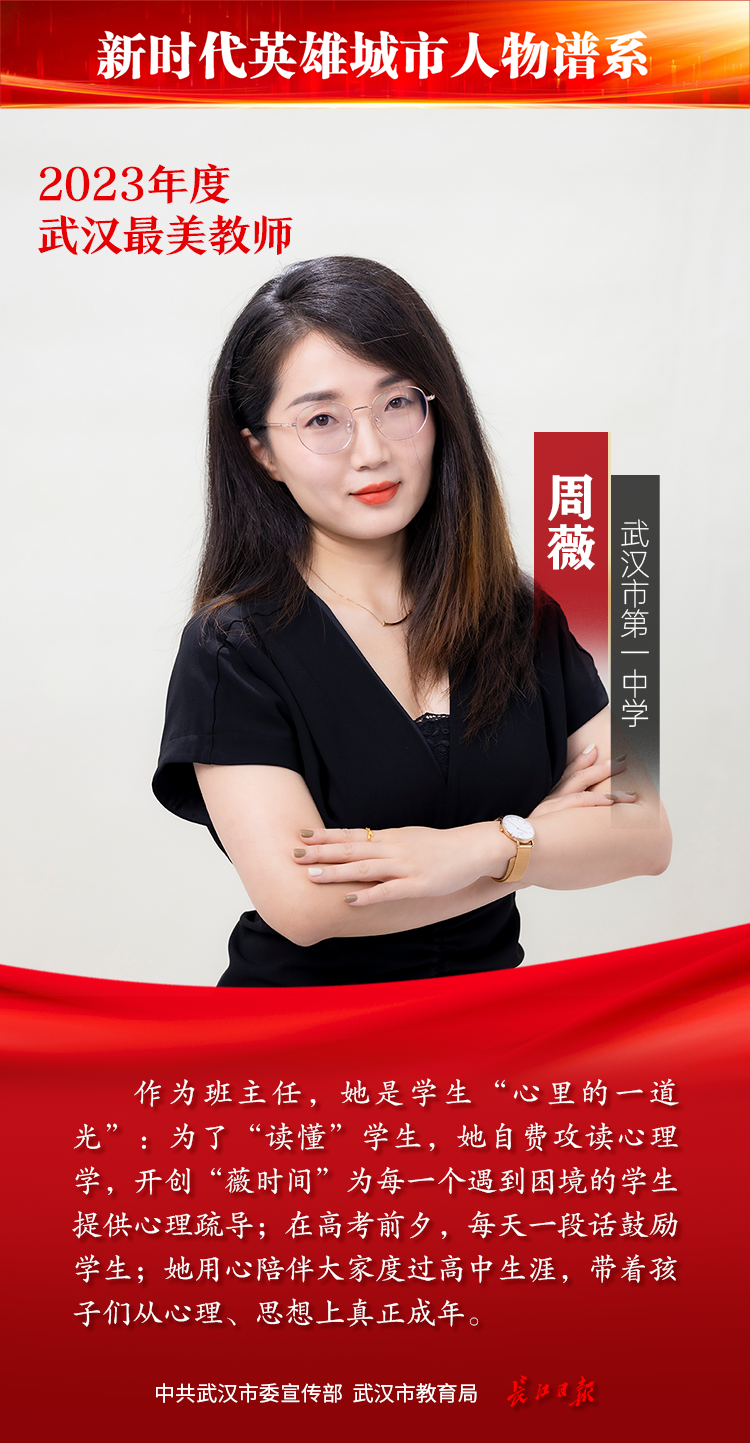 作为班主任,她是学生“心里的一道光”:为了“读懂”学生,她自费攻读心理学,开创“薇时间”为每一个遇到困境的学生提供心理疏导;在高考前夕,每天一段话鼓励学生;她用心陪伴学生度过高中生涯,带着孩子们从心理、思想上真正成年。
