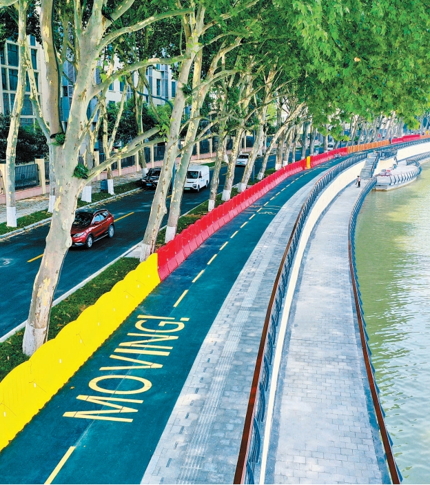 6月20日,记者现场采访看到,东湖绿道三期保留了双向通行的机动车道,新修了宽约3.5米的骑行道,提升了宽约4米的人行道,从而实现了“三道”分流,互不干扰,使车行、骑行和步行体验更加安全、通畅、舒适。
