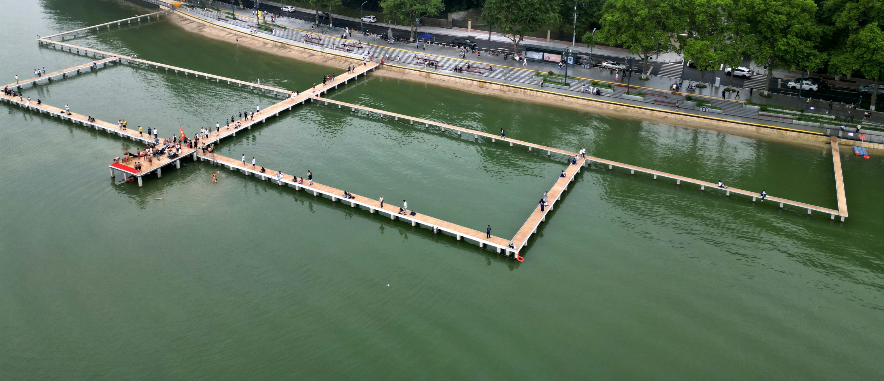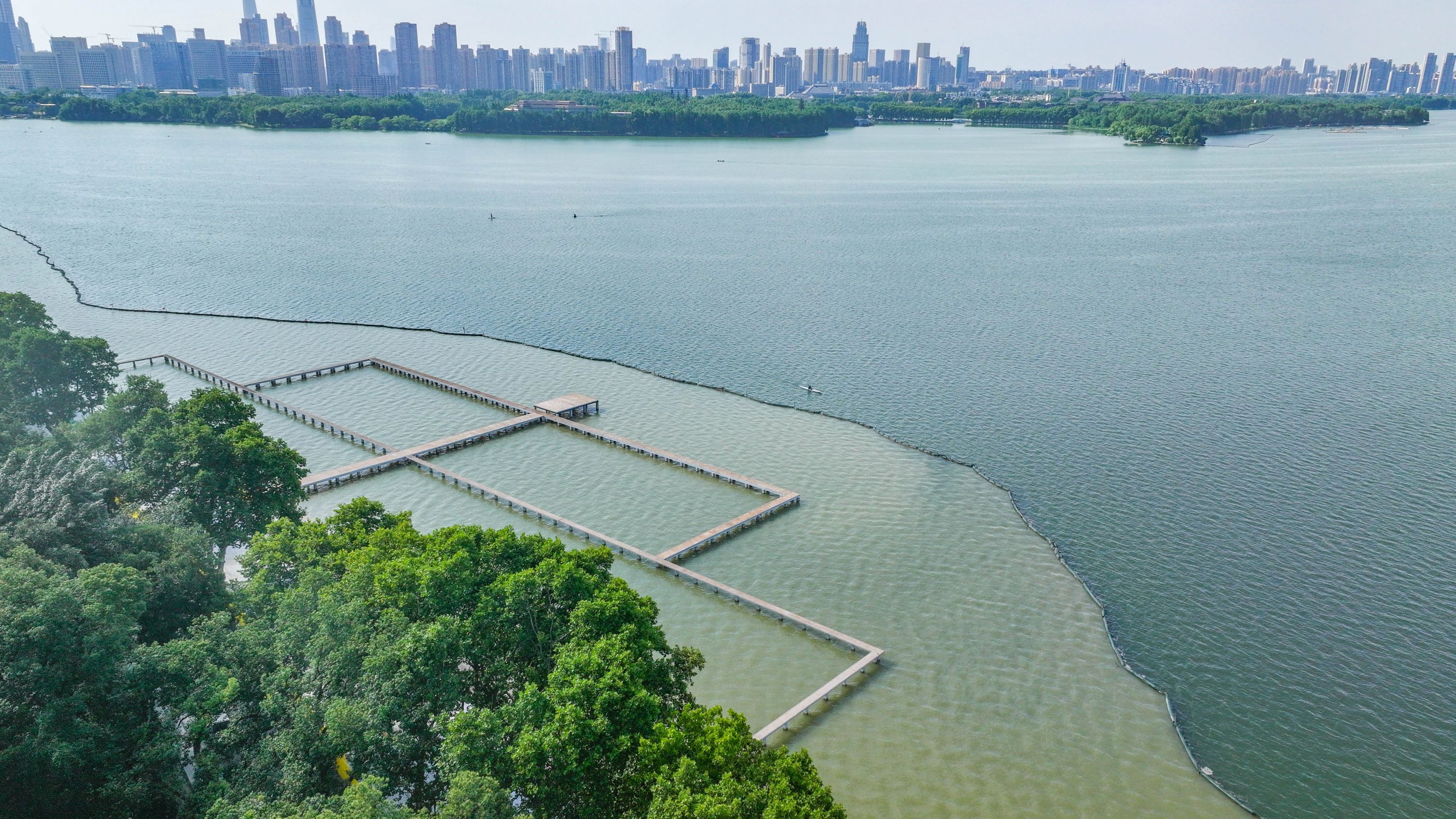 6月24日,记者在焕新归来的人气景点凌波门看到,施工时环绕栈桥处围修筑的围隔已拆除,栈桥区域的水体与浩渺的东湖已连成一片。