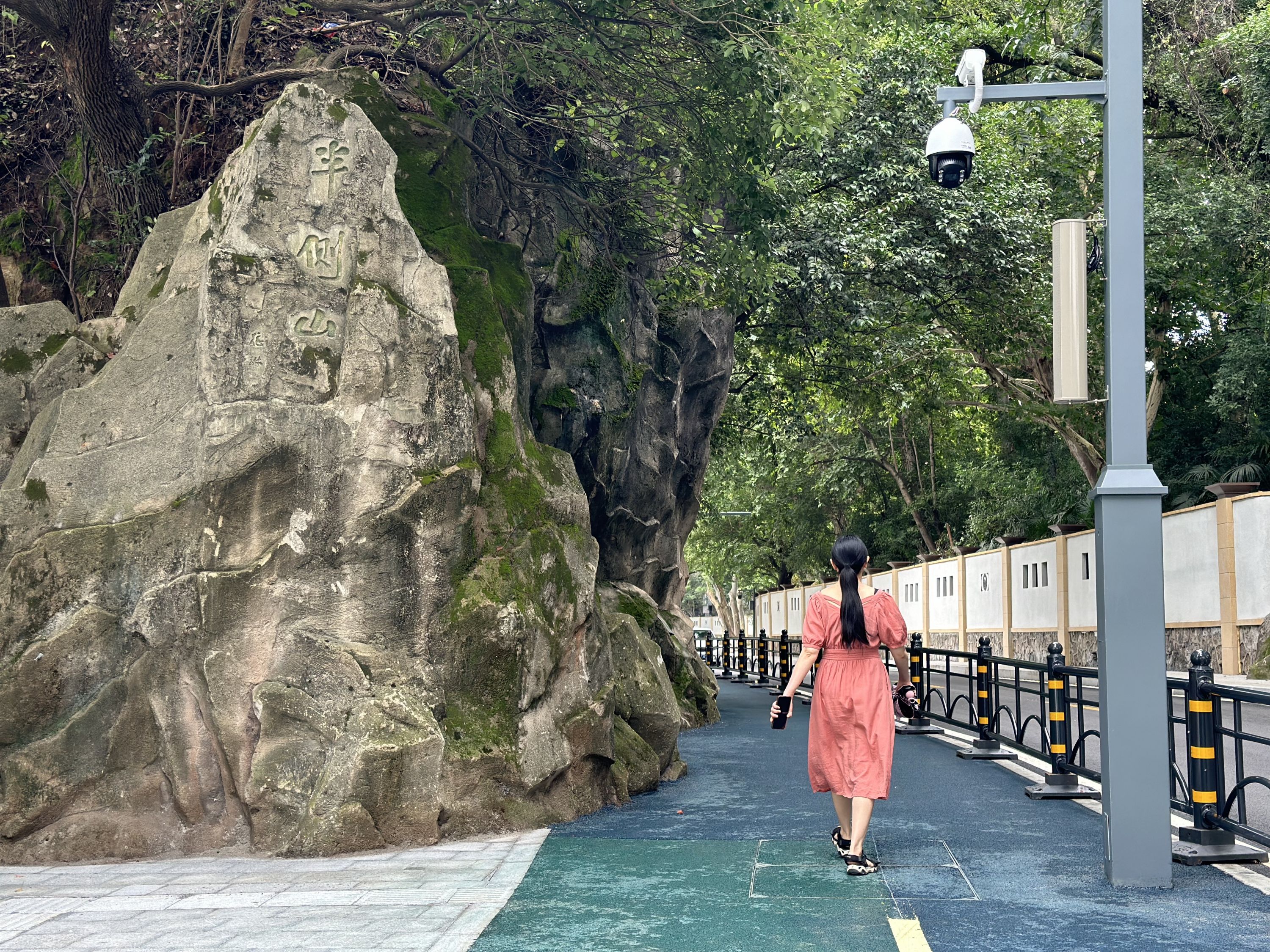 为了让“天涯海角”美景共享,同时分流行人,减轻半侧山人行道的压力,设计师采用布置石块的方式,环绕山脚修筑了一条石上步道。