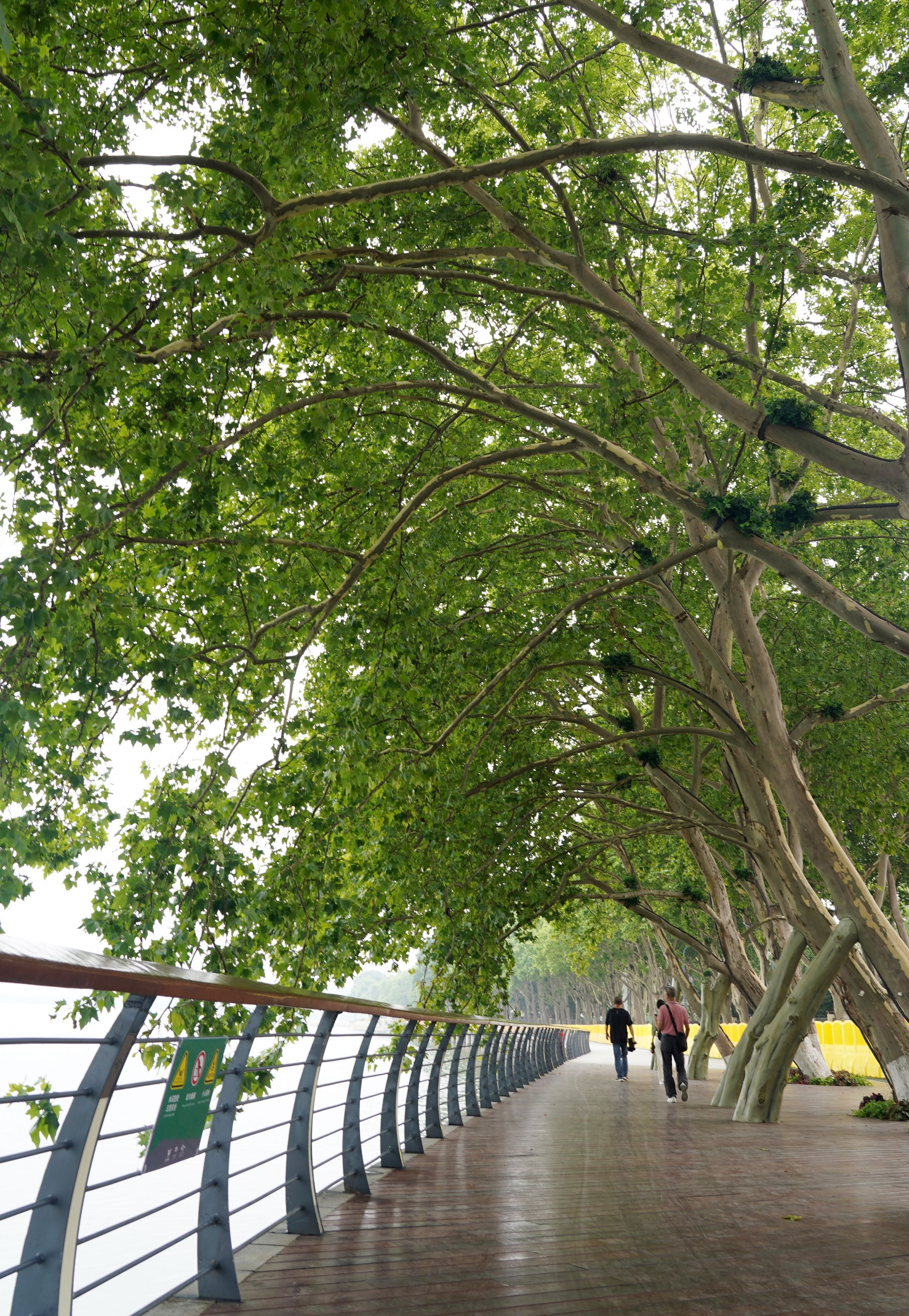 东湖绿道三期建设过程中,从东湖南路的渔火阑珊景点至风光村一棵树景点,长约3公里路段400余株高大粗壮的法桐,被悉数保留,并受到了精心呵护。