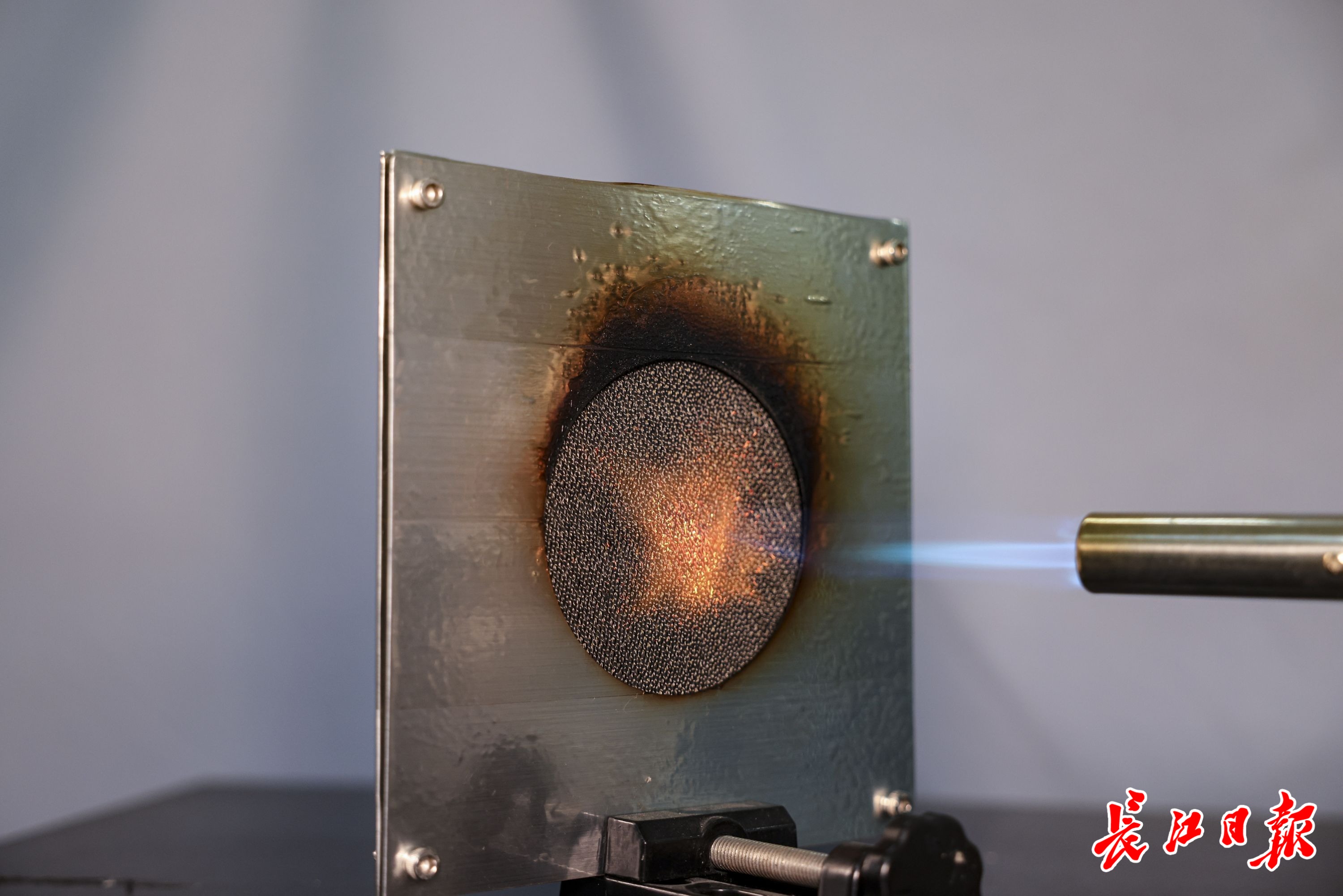 将一块布盖在手臂上,再用1200℃的火枪喷10秒,皮肤会被烧焦吗?做演示的纺大学生徐傲淡定地拿开已经被烧黑的布料,他的手臂完好无损。在武汉纺织大学,长江日报记者见证了这惊人的一幕。