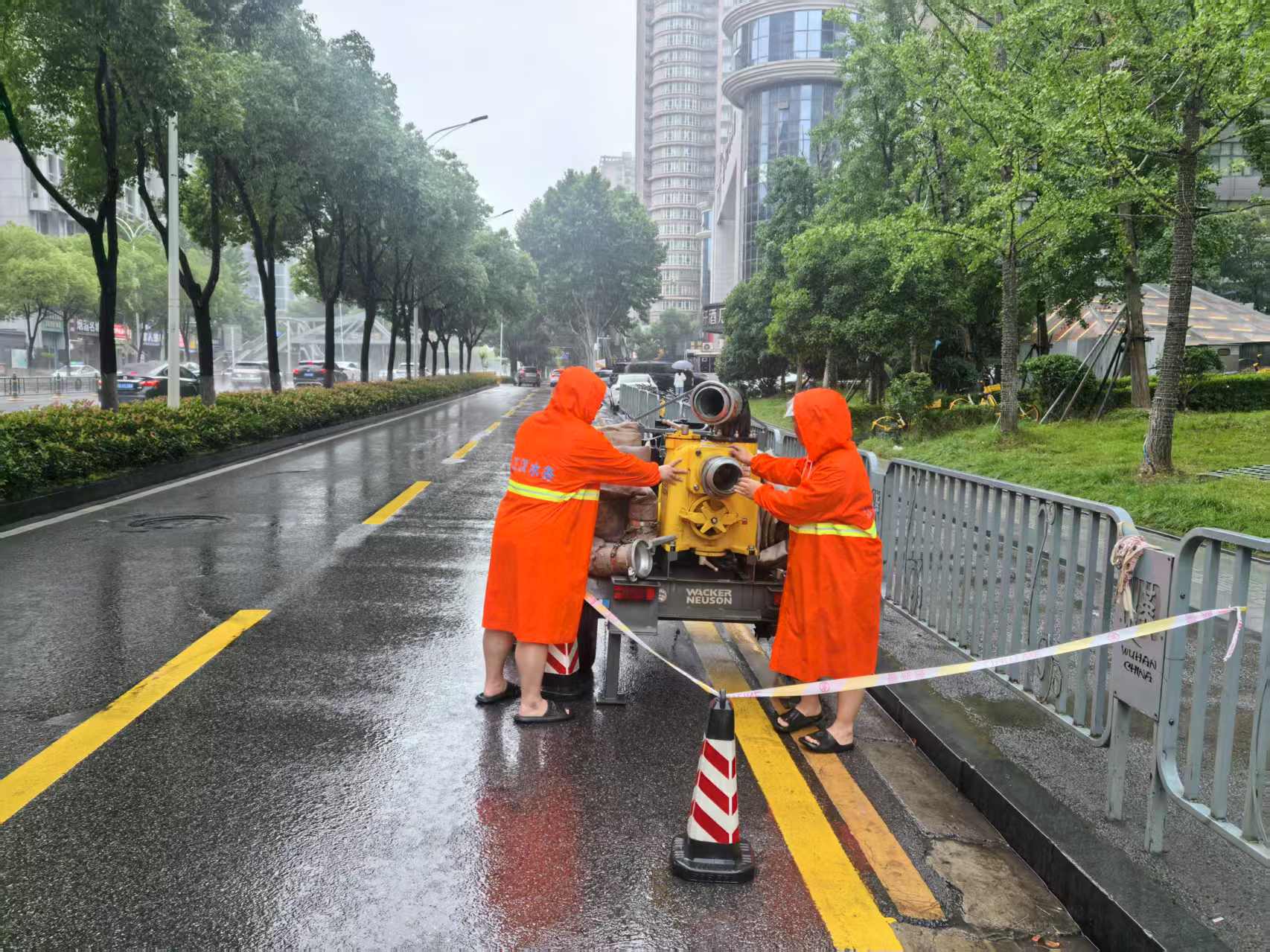 排渍应急人员、设备仍在坚守,随时应对渍水隐患,直到此轮降雨结束。