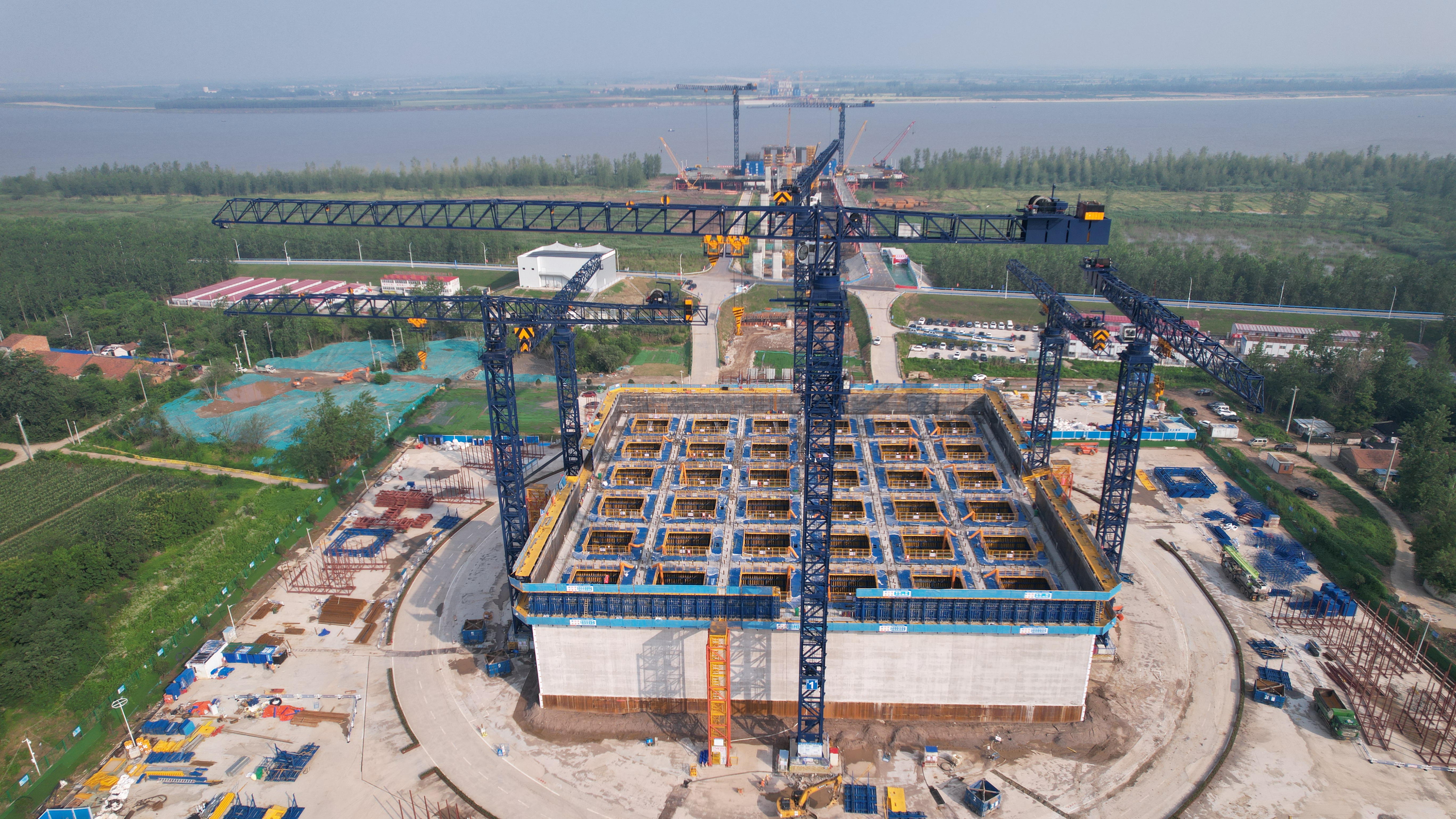 胡志红介绍,为抢抓主汛期来临前黄金建设期,工程日夜施工,采用大型沉井装配化建造技术,在预制厂内将隔墙分块预制成半成品,现场逐块组拼成形,提升工业化建造水平。目前,大桥两岸沉井均已启动下沉,南岸锚碇沉井下沉深度已达15.8米,计划年底全部完工。