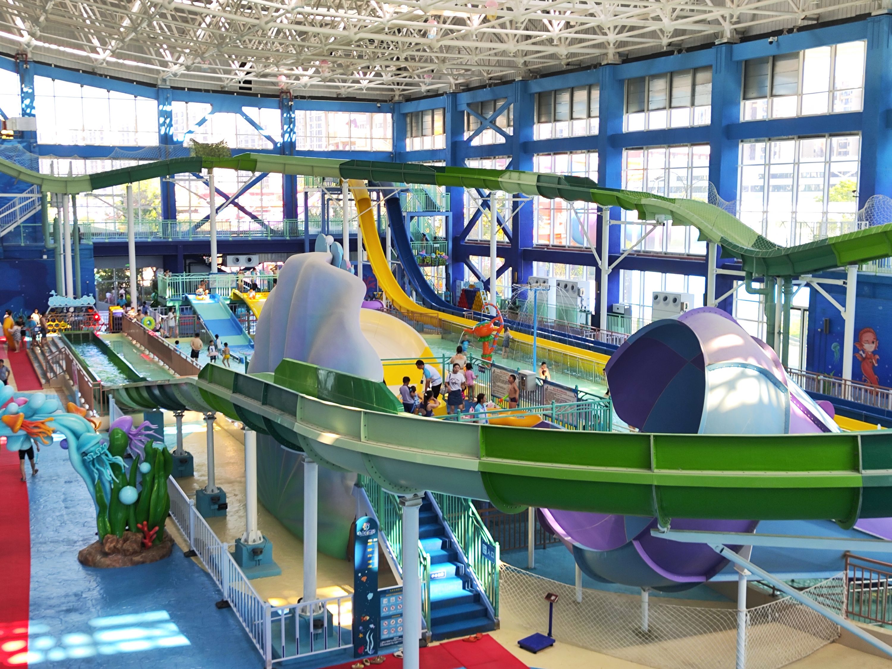 “来玩水的人很多。我看见一些年轻人从超长滑道上尖叫着滑下来,还有池子里的小孩笑得很开心,在夏天玩水是一件非常快乐的事情。”7月5日,大学生小诗和朋友一起前往盘龙水上大世界游玩,这里是一座室内外双栖水乐园:178米的超长滑道“水上飞龙”,带给游客“星际穿越”般的极致体验;“八爪狂飙章鱼大滑梯”采用多道竞速设计,让游客在蜿蜒的赛道上感受与浪花共舞的乐趣。