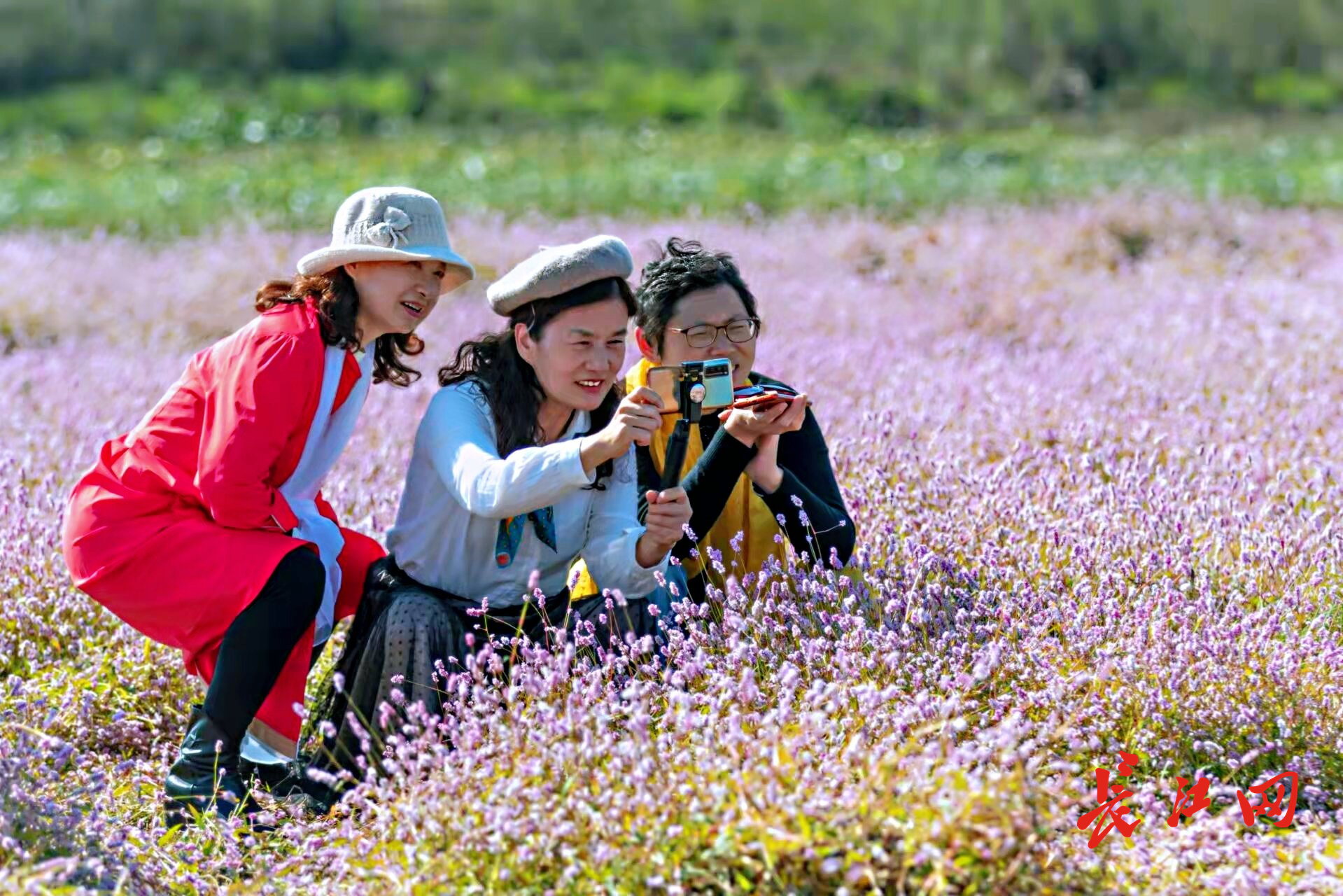 桐湖外滩的红蓼花海吸引市民游客打卡拍照。蔡甸区桐湖办事处 供图