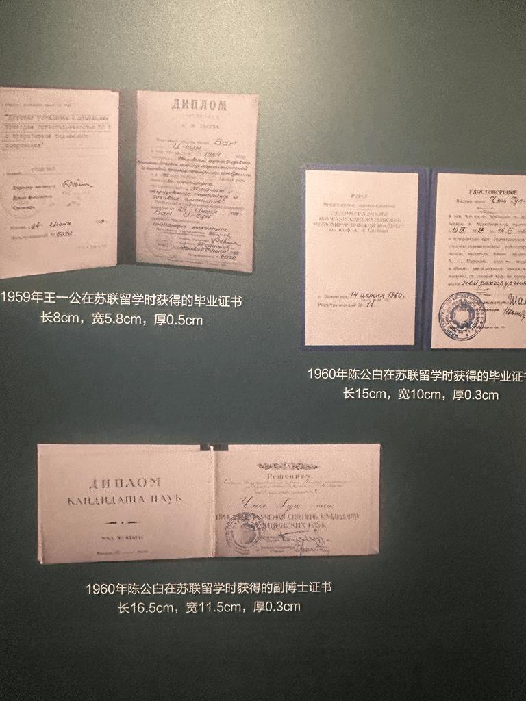 在“志在报国”部分,观众得以窥见二十世纪五六十年代留苏学子的真实足迹。展品中既有孙成木留学时所穿的蓝色西装,也有迟淑静在莫斯科第二医学院留下的俄文课堂笔记,还有刘学斌在苏联的学生宿舍通行证等。这些实物不仅是个人记忆的承载,更是一个时代群体命运的缩影,生动记录了那一代青年胸怀理想、负笈远行、学成报国的动人历程。