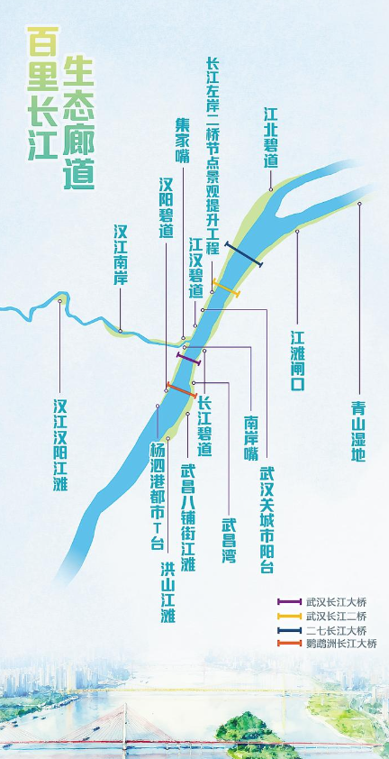 武汉百里长江生态廊道示意图。