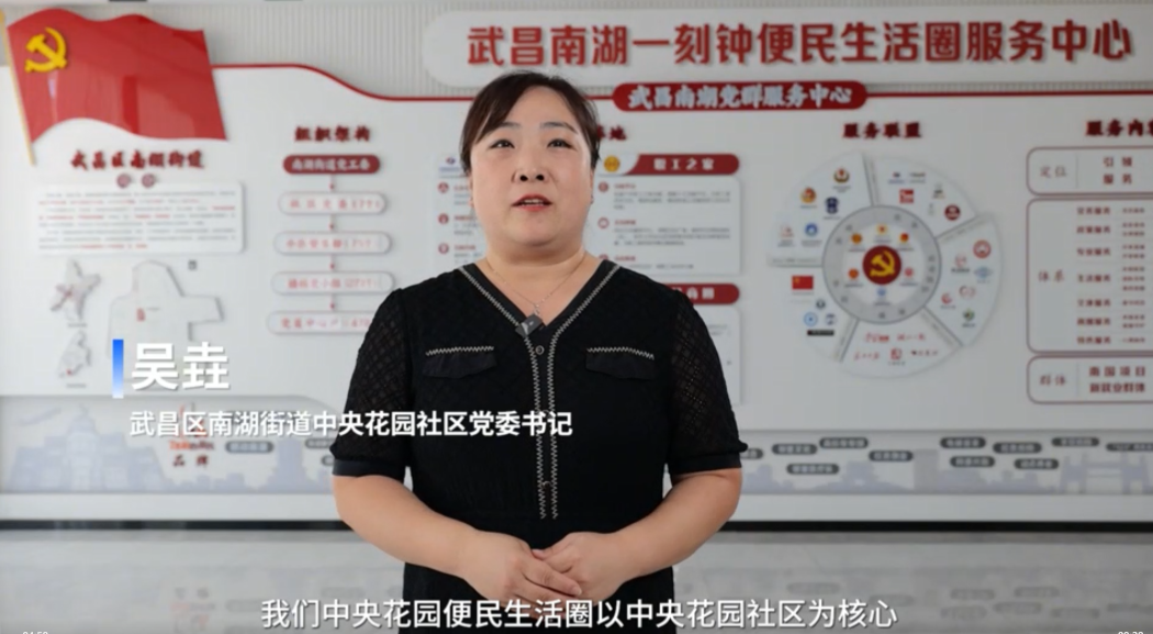 武昌区南湖街道中央花园社区党委书记吴垚。 视频截图