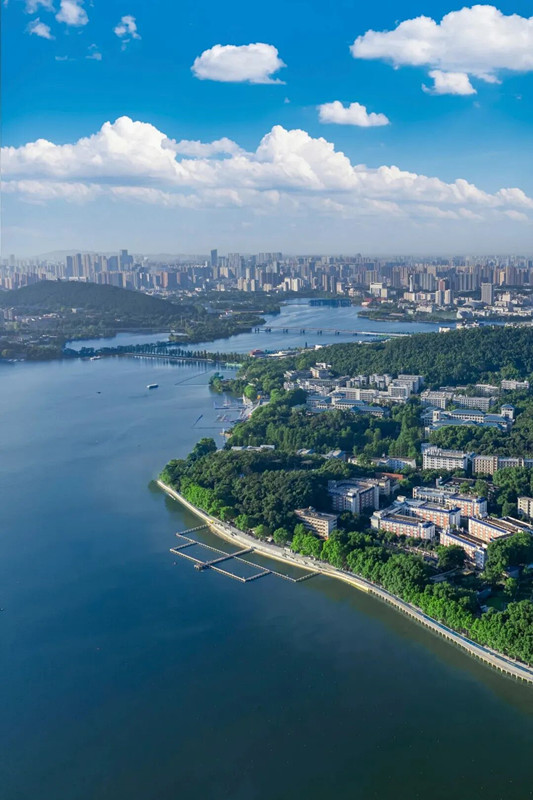 方案认为,东湖绿道三期创新性地规划建设了一条“书香道”,通过独立设置的步行道、自行车道与车行道,实现了人车分流,既保障了游览安全,也优化了出行体验。沿线精心设置了11处亲水休息区,使游客能近距离欣赏东湖的湖光山色。绿道有机串联起武汉大学、水上运动中心、中国科学院水生生物研究所等主要高等院校和体育地标。在中国科学院水生所段,一条经过重新修缮的浮雕长廊,巧妙地将中国传统元素与长江水生生物科学知识相融合,沿线科研机构的庭院也面向公众开放,增强了社区参与感和互动性。此外,绿道沿线还布置了诸多体现文学主题的设施,彰显了武汉深厚的学术底蕴与历史文脉,包括定期举办文化活动,开放式的湖畔音乐会、“跳东湖”等特色文化活动,为游客提供了丰富多彩的沉浸式文化体验。