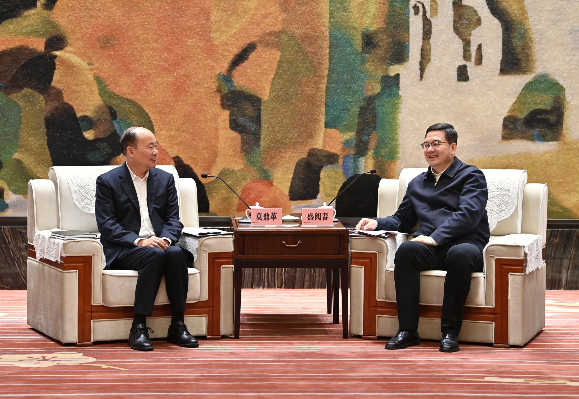 11月6日,省委常委、市委书记、市长盛阅春会见中国化学工程集团有限公司党委书记、董事长莫鼎革。