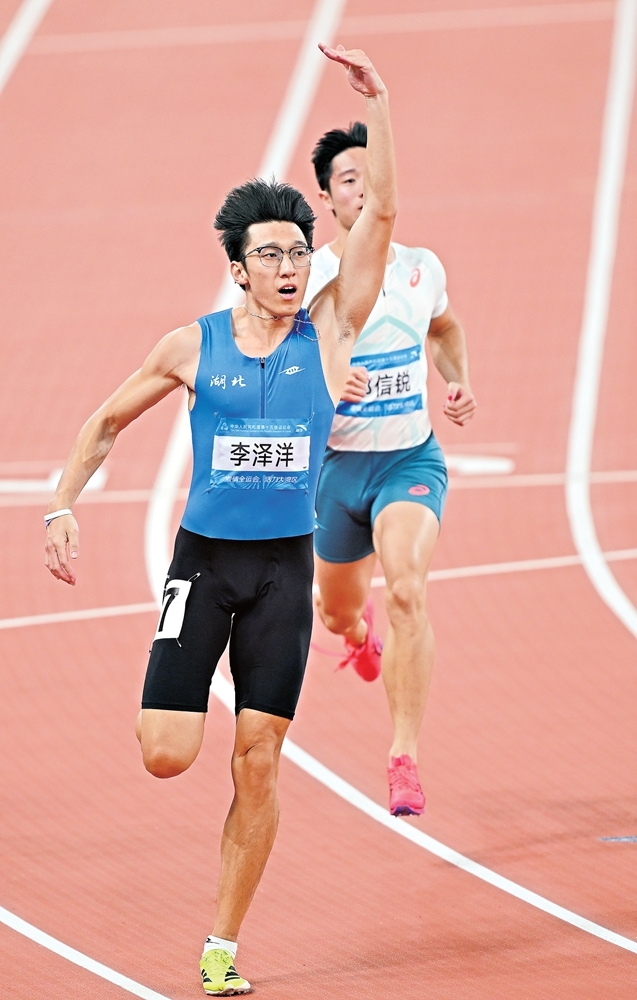 11月17日晚,全运会田径赛场上演压轴大戏,武汉大学毕业的湖北队员李泽洋凭借强大的后程能力,在最后10米实现反超,在百米“飞人大战”中以10秒11加冕“中国新飞人”,其预赛10秒08的成绩更跻身“10秒10俱乐部”,成为历史上第八位突破这一关口的中国飞人。