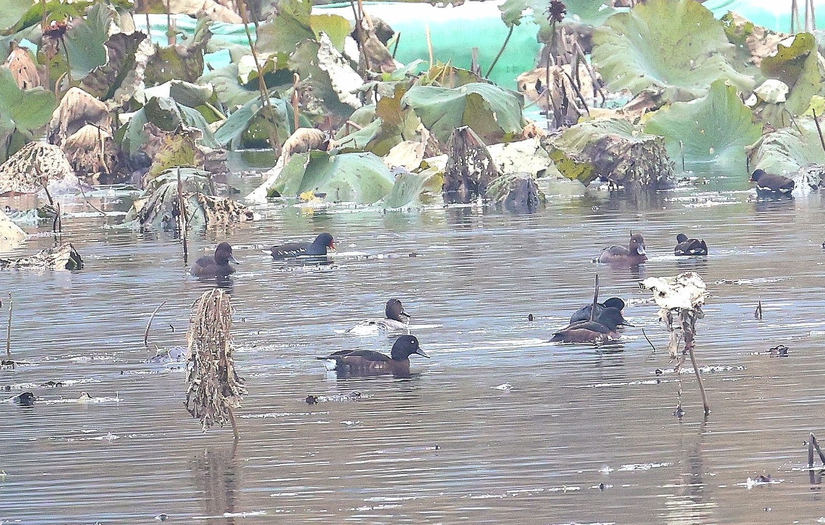 12月4日,一个青头潜鸭小族群在东湖水域出没。