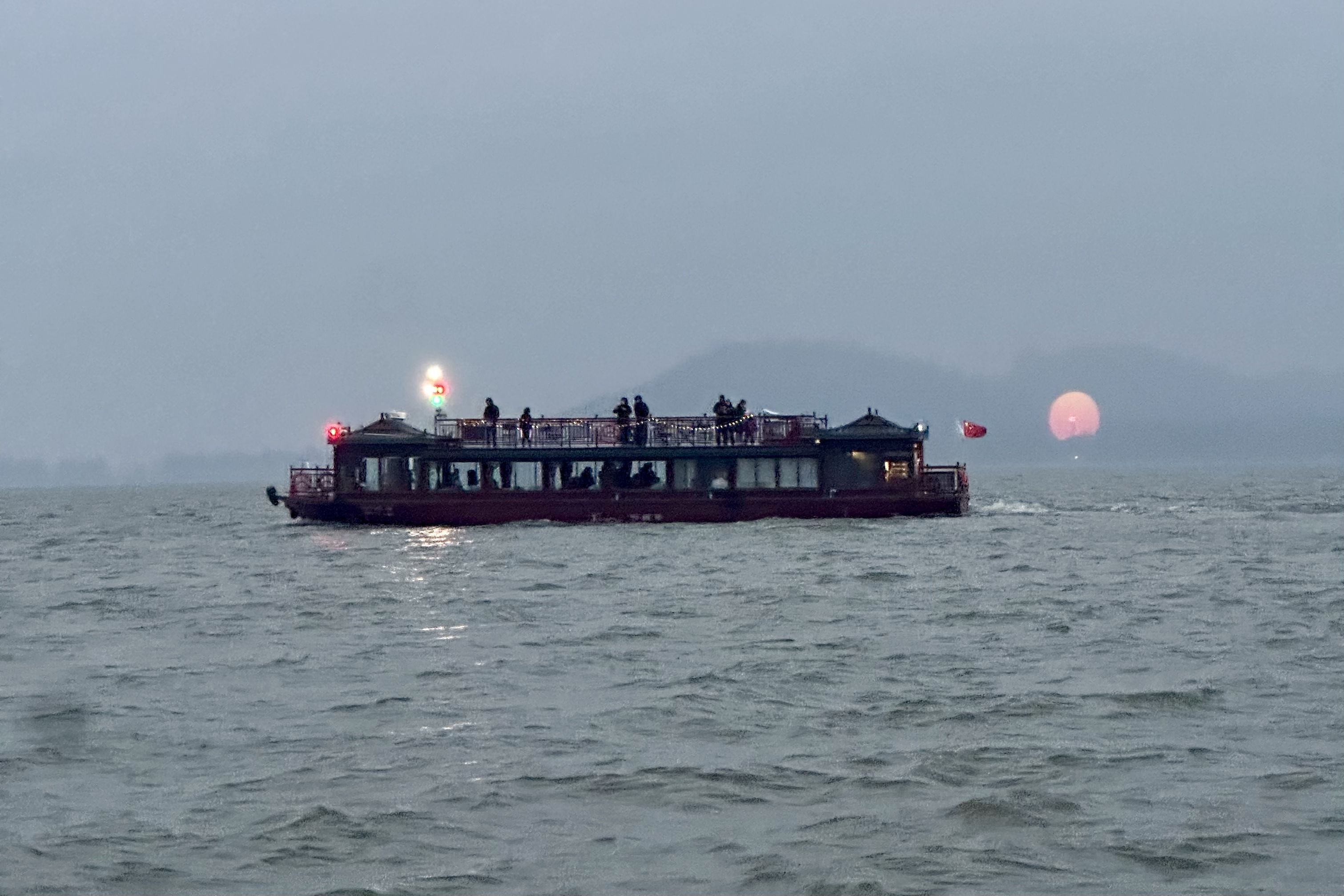 元旦清晨,薄雾轻笼湖面,10艘游船载着300多名游客在东湖之上“凌波追光”,将新年愿望写在湖光山色中。东湖游船新年活动有关负责人表示,当天天气不佳,为不让游客失望,破晓前临时联系与日出方位相近的东湖之眼摩天轮,希望能投屏“造个太阳”,摩天轮方面响应迅速,很快做好了投屏,为游客升起了一轮温暖的“人造太阳”。 “没想到是以这样的方式迎接新年第一缕‘阳光’,太惊喜、太温暖了!”现场的大学生游客罗佳旻兴奋地表示。来自重庆的何先生也感慨:“武汉太会了,‘人造太阳’把情绪价值拉满,这趟来得值!”随后,成群的红嘴鸥翩然而至,与船上欢乐的人群共同构成一幅灵动的迎新图景。游客们在饱览美景后,在湖边餐厅品尝地道的汉派过早,有效拓展了晨间消费时段。